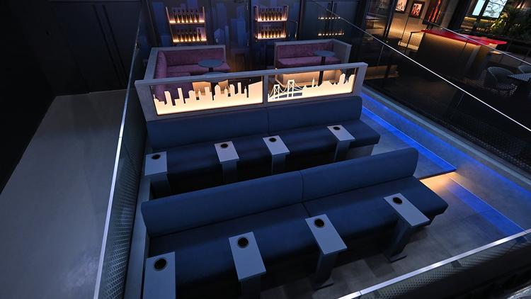 渋谷や原宿のPOPカルチャーを意識した光の空間。テラスの光るバーカウンターが、観戦時に高揚感と軽快さを演出します。