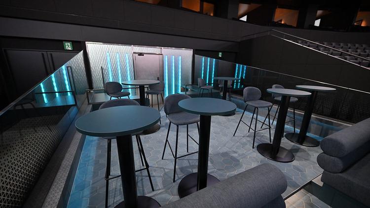 渋谷や原宿のPOPカルチャーを意識した光の空間。テラスの光るバーカウンターが、観戦時に高揚感と軽快さを演出します。