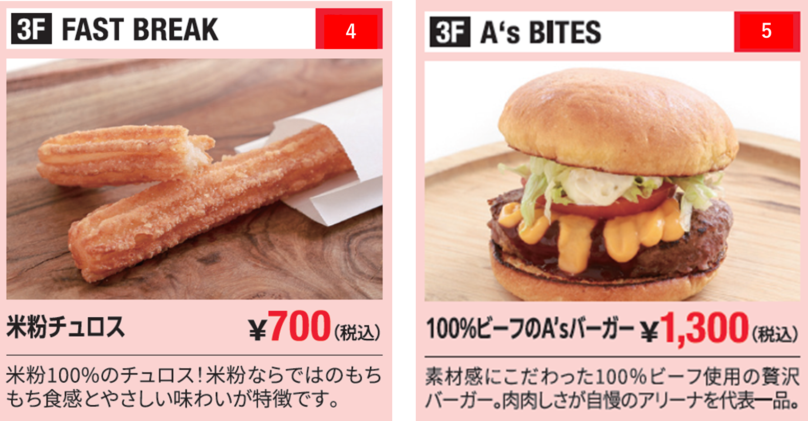 TOYOTA ARENA TOKYO自慢のアリーナグルメが、本日はチケット不要でお楽しみいただけます!(4F ROOK Cafe:ルークまん、3F A'S BITE:100%ビーフのA’sバーガーは販売を終了しました)
